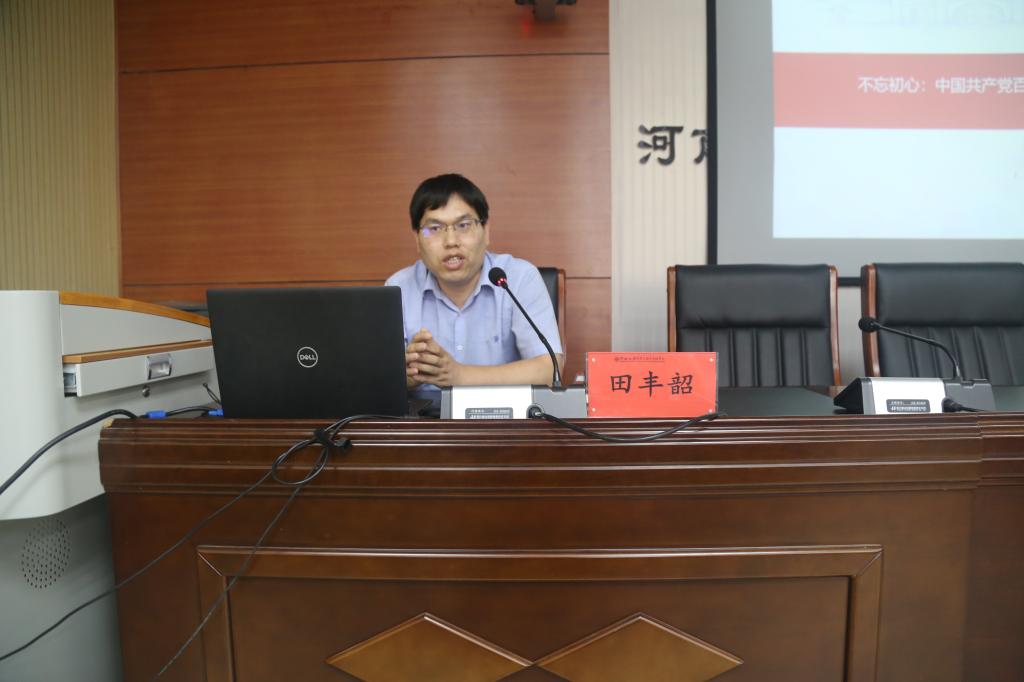 副院长田丰韶在学院三楼第一会议室中国共产党百年反贫困史专题报告。学院领导班子成员和全体教师参加了本次活动。