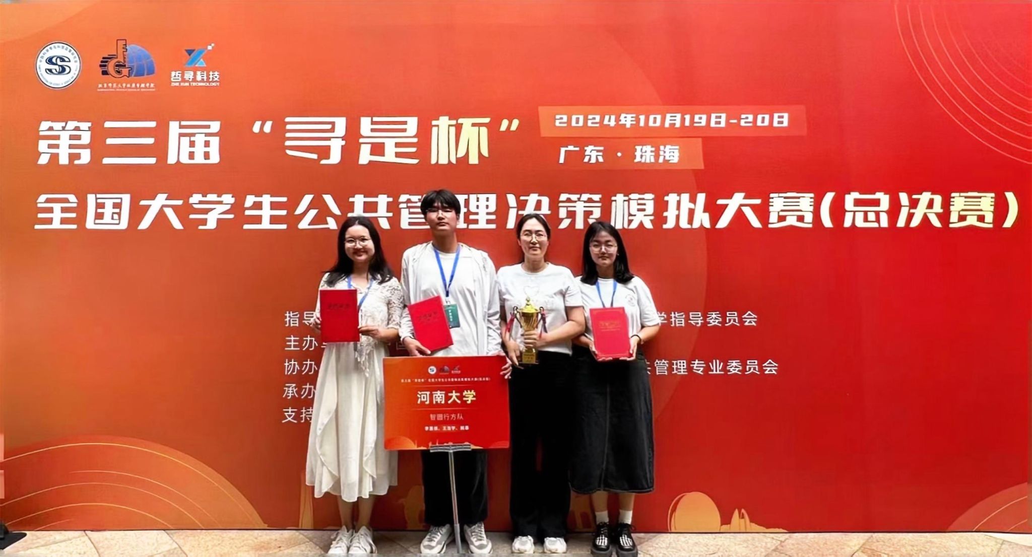 “寻是杯”全国大学生公共管理决策模拟大赛是公共管理学科领域面向本科生开设的代表性的全国赛事。比赛分为公共管理方案设计、公共管理决策演练沙盘对抗和团队现场答辩三个阶段,以赛促能,充分考验参赛学生的实践能力、创新能力和就业能力。本次比赛共有来自全国近300所高校的队伍参与7个赛区选拔赛的晋级角逐,嫩草影院 代表队以华中赛区一等奖晋级全国总决赛。