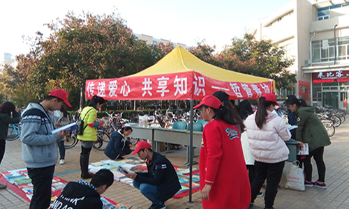 秋风萧瑟,寒气逼人,温度的降低阻挡不了志愿者的热情。七点半志愿者在南苑餐厅前摆好摊位,并将已毕业同学捐赠的书籍分类摆放整齐,书籍囊括了学习资料、小说、杂志报刊等。志愿者们为经过的同学详细地介绍摊位上的各种书籍,耐心推荐适合他们的专业书和课外书,并向过往的同学传达了此次活动“传递爱心,共享知识”的理念,得到众多学生的共鸣,有的同学更是将自己的书籍捐献出来,共享精神在此得以传递。这次活动不仅吸引了广大同学前来参与,更得到了众多教职工的关注。他们对此次活动予以肯定,并希望这样的活动能够多多开展,让知识在校园中充分传递。