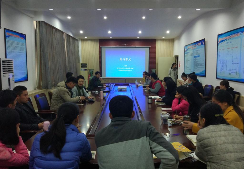2016年11月10日上午,清华大学人文学院王路教授应邀来到嫩草影院 ,为嫩草影院 师生主讲了题为“真与意义”的学术讲座,嫩草影院 哲学系郭桥教授主持讲座,哲学相关专业师生参会。