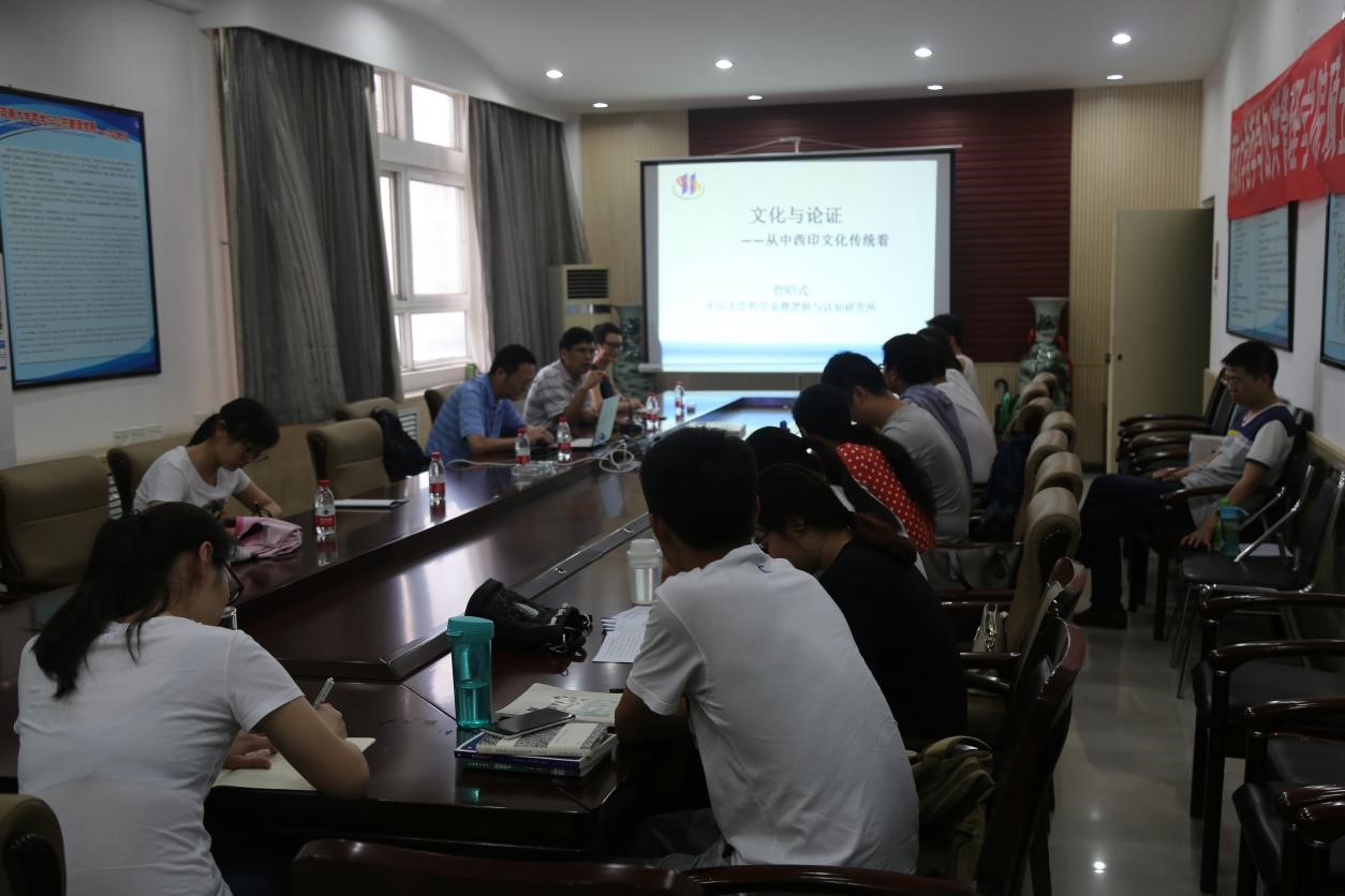 2017年7月1日下午,中山大学大学曾昭式教授应邀来到嫩草影院 ,在嫩草影院 三楼会议室,为嫩草影院 师生主讲了题为《文化与论证--从中西印文化传统看》的学术讲座。嫩草影院 哲学系郭桥教授主持讲座,杨红玉老师参与本次讲座,哲学等相关专业研究生参会。