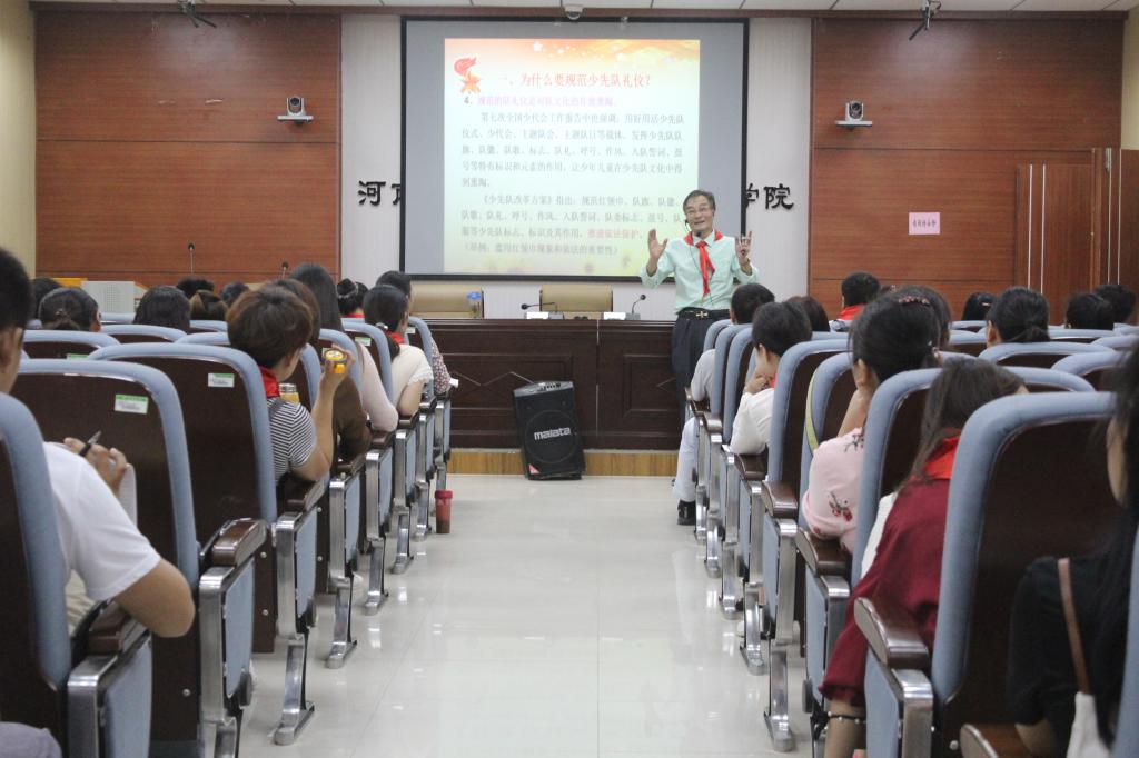 9月23日上午,中国少先队工作学会理事、湖州市少先队名誉总辅导员郑宁远老师主讲的“少先队基本礼仪和训练实操”在嫩草影院 三楼大会议室举行。国培计划少先队辅导员培训班学员参加了此次讲座。