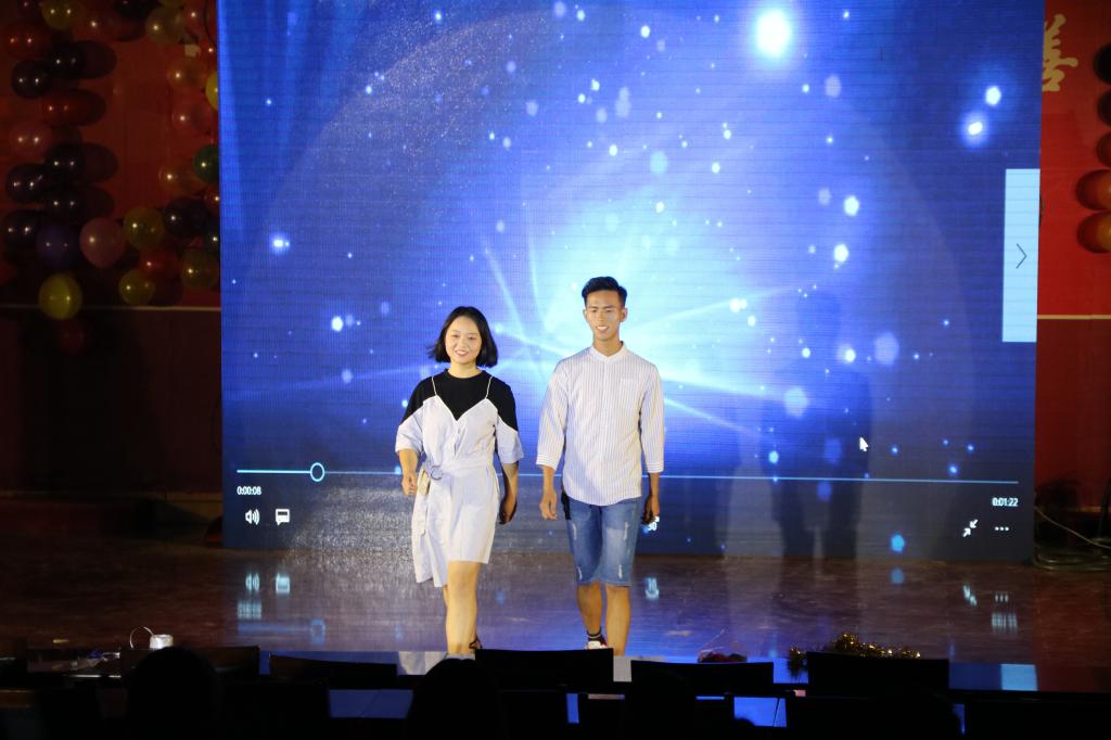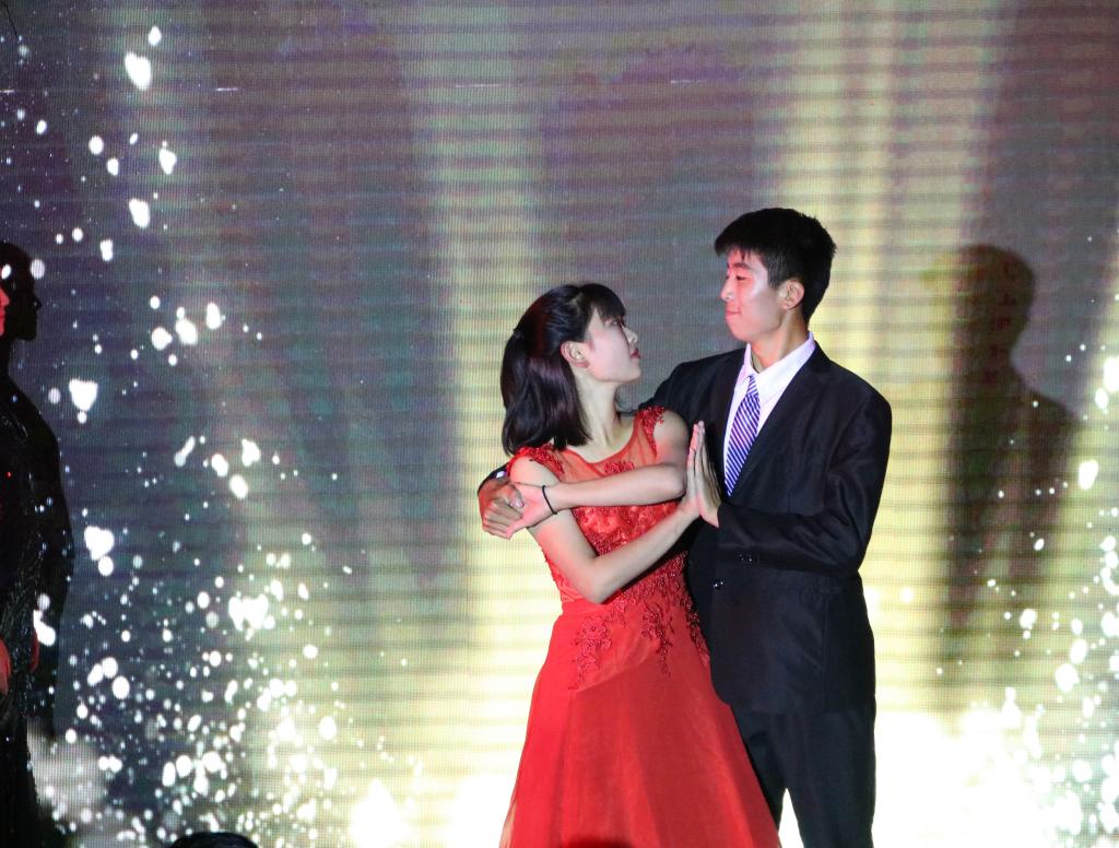 乐起舞动,激情四射的开场舞,首先便为晚会营造了热烈的气氛。随后研究生气势恢宏的诗朗诵,给观众带来极大震撼。精彩的健美操激发了新生们参与体育活动的热情。喜剧小品《廉价航空》以幽默诙谐的情节调起了全场气氛,将观众们的胃口正式调动起来。小品《新闻联播》紧贴大学生活,带来欢乐的同时也引发了大学生们对“校园贷”和健康生活的思考。相声《梦中婚》通过诙谐的叙述,反映了各种生活现象,惹得观众捧腹大笑。歌曲《飘过海洋来看你》用优美的旋律再现了大学生们的日常生活中的酸甜苦辣,表达了大学生们对未来美好生活的向往。院里为17级新生准备的教官视频,瞬间让新生们泪洒当场,纷纷回想起了与教官共同生活的点点滴滴。随后的经典T台秀,小品《烤串》,歌曲串烧,以及学生会主席团带来的华尔兹舞蹈《赤道和北极》都让台下阵阵掌声和欢呼声一浪高过一浪。同时,舞台一侧的微信墙大屏幕也在不断显示着大家对节目的评价和对晚会的祝福。最后,歌曲《光阴的故事》为晚会画上了完美的句号,歌声中饱含着同学们的铿锵自信和对未来的的无限希望!