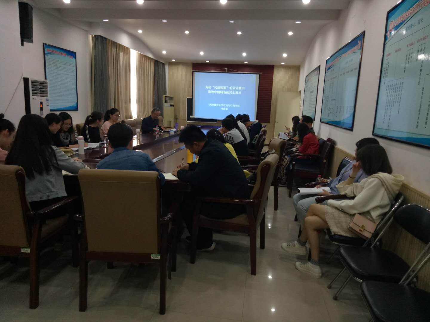 2018年3月28日下午2点30分,天津师范大学马德普教授应邀来到嫩草影院 ,在嫩草影院 三楼会议室为嫩草影院 师生主讲了题为“跳出民族国家的窠臼,建设中国的民主政治”的学术讲座。嫩草影院 政治系张向东院长主持讲座,政治学专业学生参会。