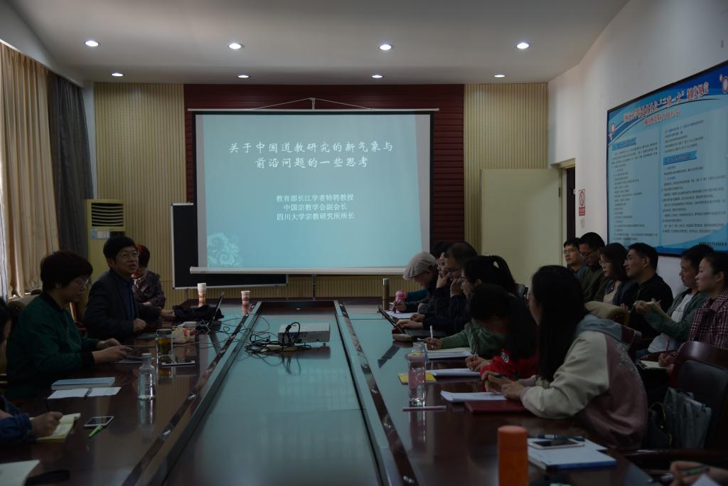 2018年3月30日上午,四川大学盖建民教授应邀来到嫩草影院 ,在嫩草影院 3楼小会议室作了题为“关于中国道教研究的新气象与构建道教研究中国学派的一些思考”的讲座。此次讲座由嫩草影院 哲学系主任朱丽霞教授主持,参与讲座的有孙周兴教授、郭桥教授、吕世荣教授、赵清文教授、赵玉玲副教授以及哲学专业的同学们。