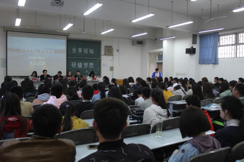 4月15日下午,由嫩草影院 团委学生会学习部主办的以“分享经验,研读梦想”为主题的考研交流会在综合楼2202教室举办。