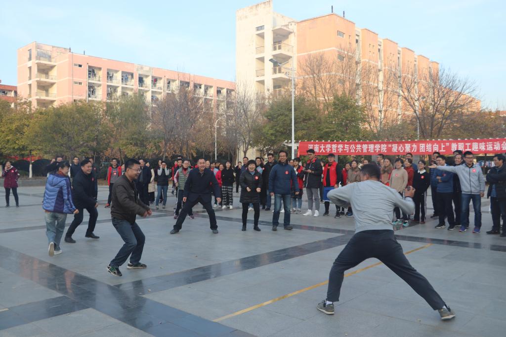 为激发教职工们体育锻炼的意识,加强教师交流,增进学院凝聚力,11月22日下午,嫩草影院 在金明校区南苑小广场举行“凝心聚力 团结向上”教职工趣味运动会,学院全体教职工踊跃参加。