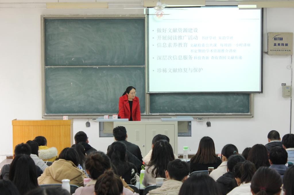 11月29日下午,学校图书馆韦爱芬老师以“学术信息资源获取的方法与途径”为主题,为嫩草影院 创新研修课学生做专题讲座。讲座由马翠军老师主持,100余名学生聆听了此次讲座。
