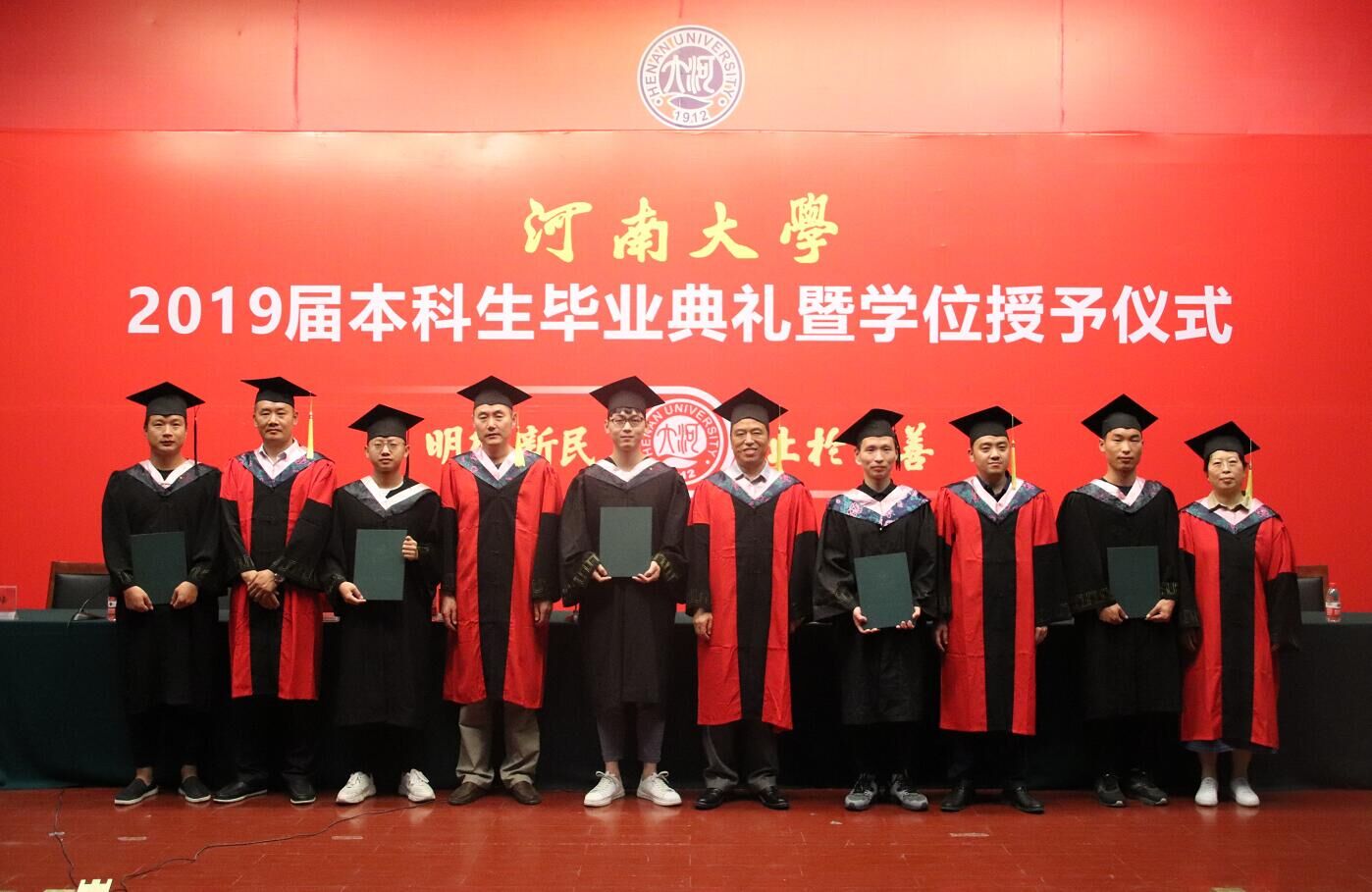 院长姬志闯等导师代表为毕业生一一援正流苏,颁发学士学位证书,并合影留念。