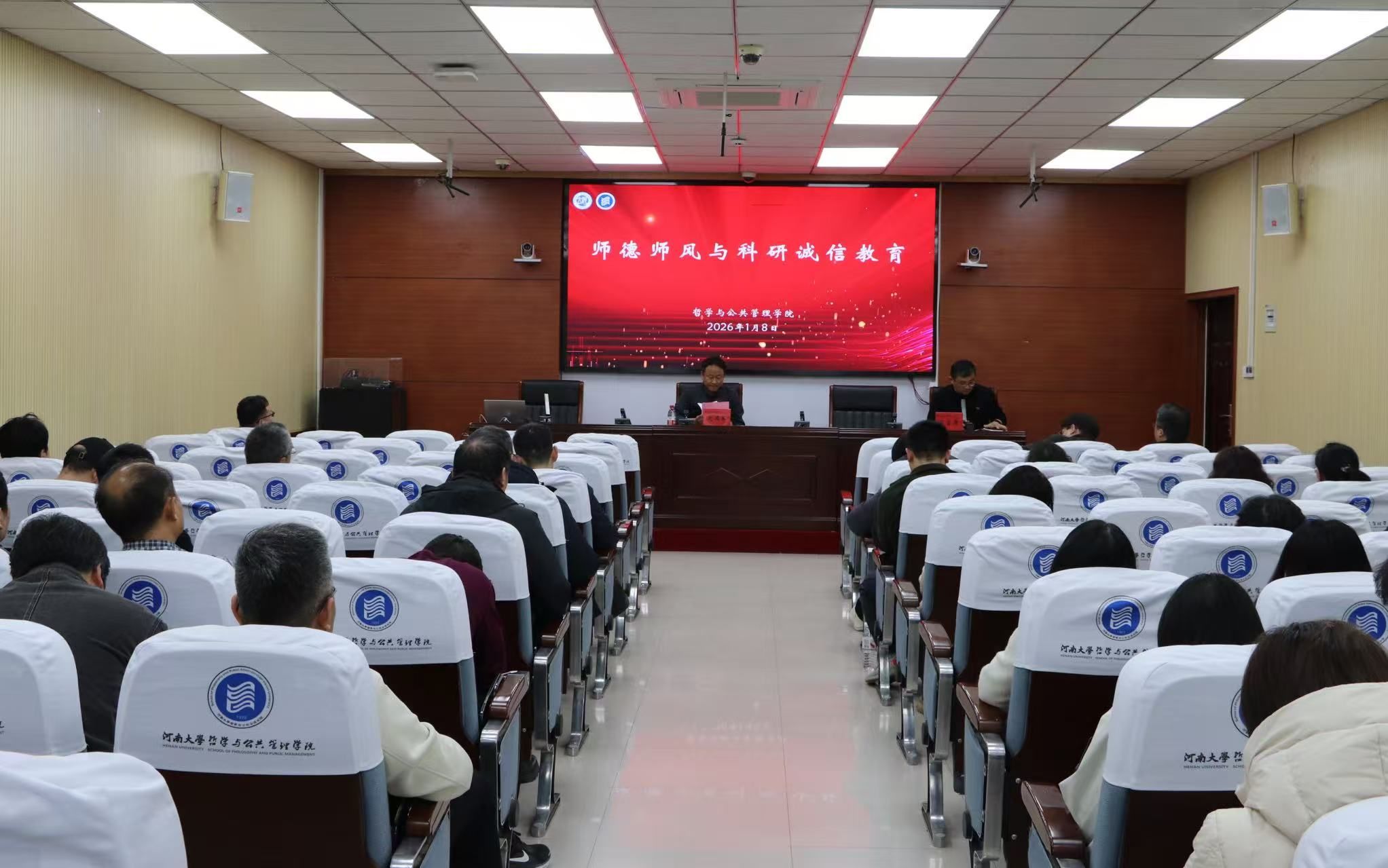 最后,院党委书记党鸿军带领全体教师进行了师德师风与科研诚信专题学习教育。他谈到,学院始终将科研工作作为学院党委的“一把手”工程抓实抓细,与会教师要充分认识到国社科项目申报对于学校新文科建设与个人成长发展的重要意义,积极投身项目申报工作,应报尽报。他表示,学院将会进一步加强宏观调整,多轮次开展选题论证,合理分配赛道,精雕细琢申报材料,全流程专家跟进指导。同时,他鼓励青年教师要发挥积极作用,敢于瞄准前沿选题,主动融入学科团队,在项目申报实践中锤炼本领、积累经验,为学院学科建设与科研创新注入源源不断活力。