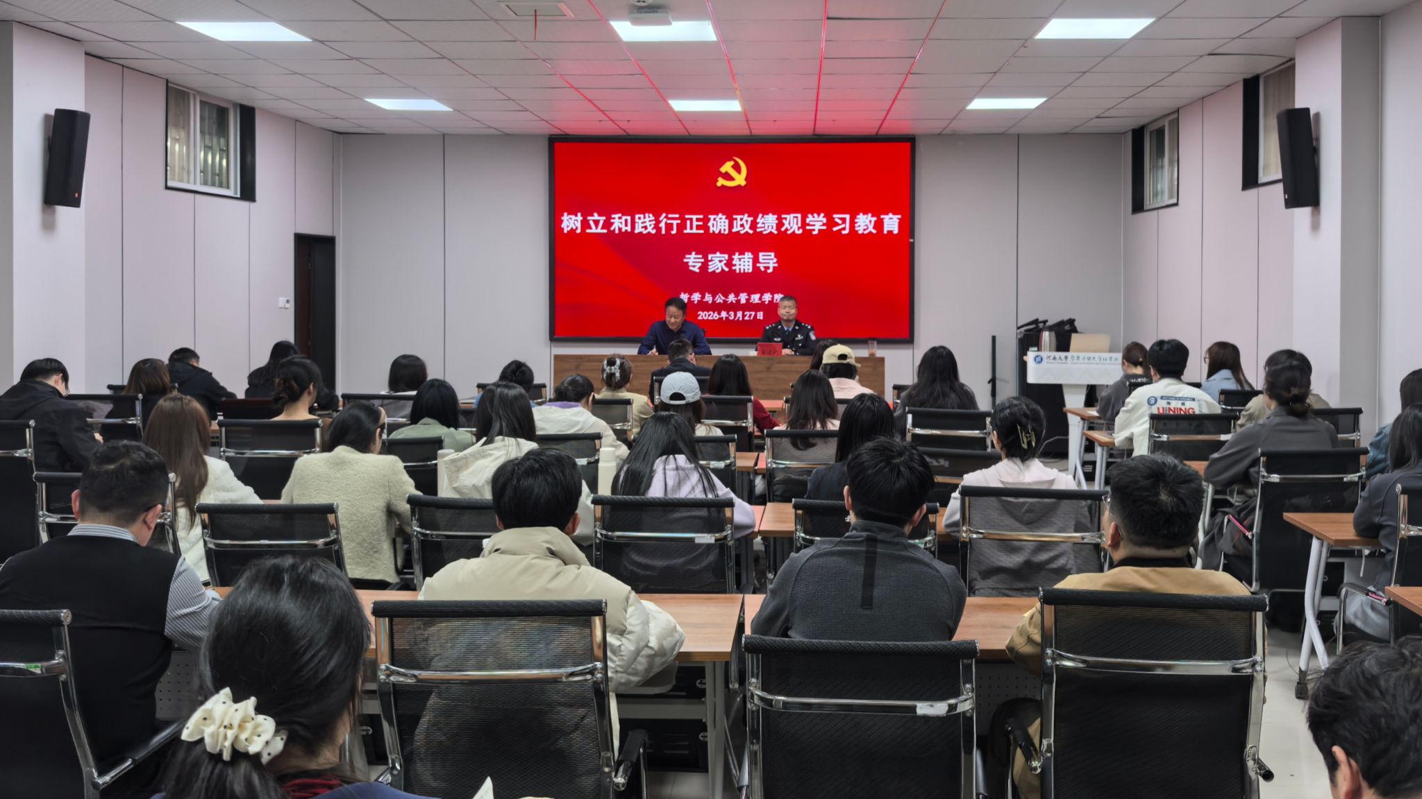 按照学校关于开展树立和践行正确政绩观学习教育工作安排,3月26日至27日,嫩草影院 用两天时间,采取集中学习、个人自学、专家辅导和交流研讨相结合的方式,举办树立和践行正确政绩观学习教育读书班。学院党委理论学习中心组全体成员、各基层党支部书记、各科室负责人及师生党员代表参加。