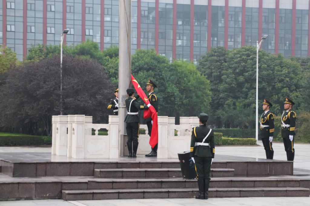 仪式过后,团员代表2019级陈曌玥、2017级张纪渊分别发表国旗下的演讲。一段岁月,波澜壮阔;一种精神,辉映未来。陈曌玥回顾七十年风雨历程,结合改革开放取得的伟大成就表达了真挚的爱国之情和为中国梦砥砺奋斗的远大志向。“一路向前,永不停歇”,她号召新生进入大学更应珍惜时光,努力前行,用青春践行使命担当。