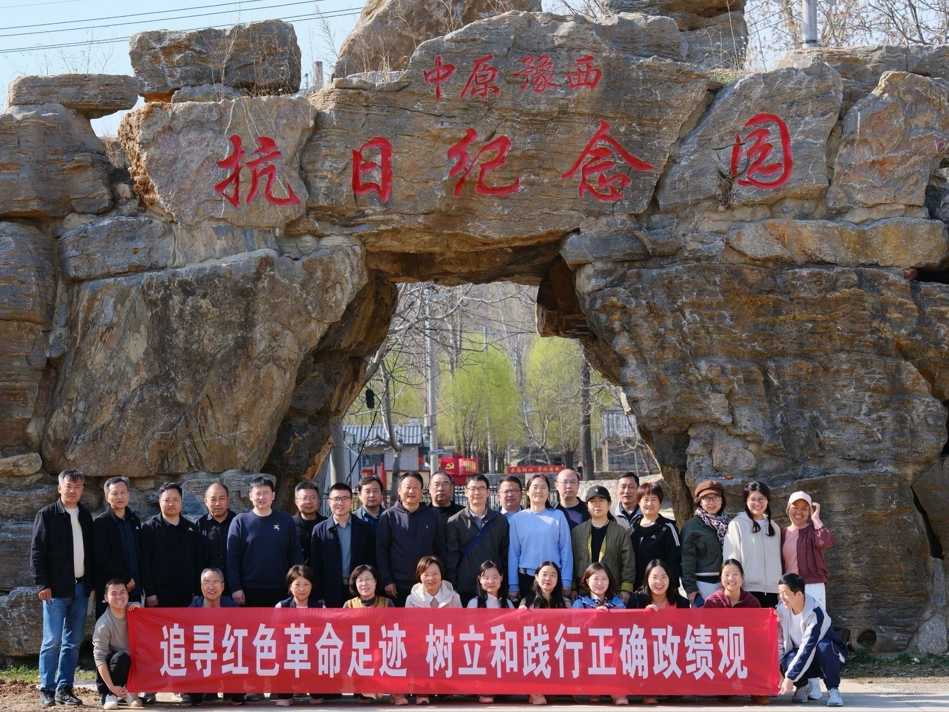 为深入学习贯彻习近平总书记关于树立和践行正确政绩观的重要论述,传承红色基因、锤炼党性修养,切实把红色精神转化为教书育人、履职尽责的实际行动,近日,嫩草影院 组织教师党员赴中原豫西抗日纪念园开展“追寻红色革命足迹 树立和践行正确政绩观”主题党日活动,在沉浸式红色教育中感悟初心使命,在回望革命历程中校准政绩坐标,推动正确政绩观入脑入心、见行见效。