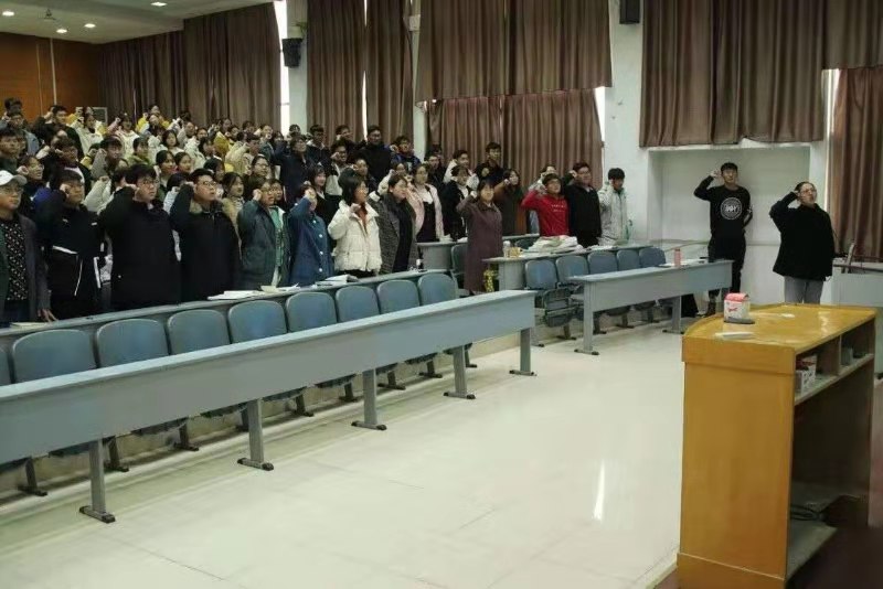 主题教育结束后,刘喜英以考试作弊的严重后果告诫学生诚信考试的重要性。她鼓励学生认真复习、积极备考,以完备的知识和充分的自信迎接大学的第一次考试。随后,全体2019级学生作诚信宣誓,2019级年级团支书龚宇新担任领誓人。