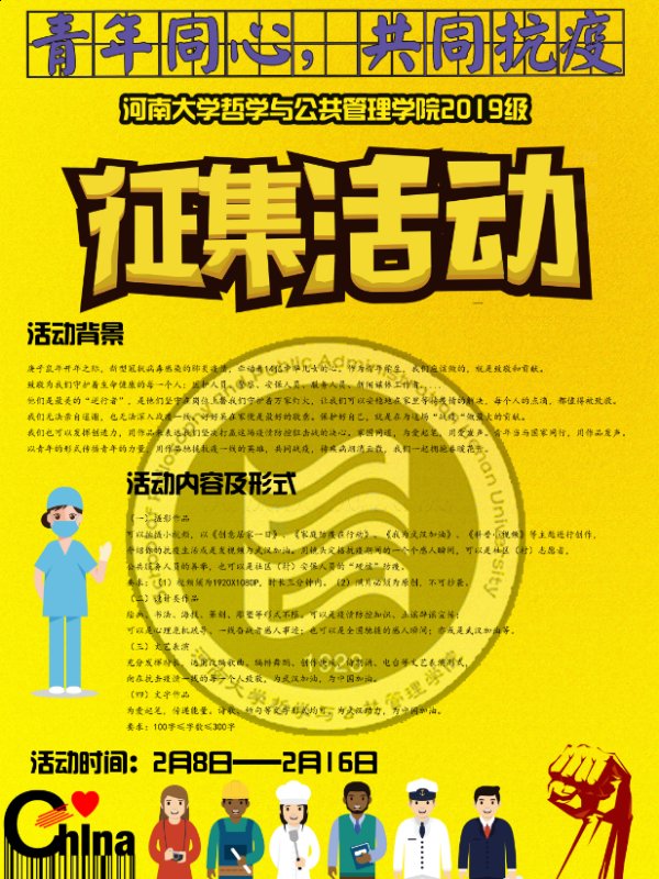 这个春天,新冠肺炎疫情牵动着14亿中华儿女的心。为表达青年学子对抗疫英雄的祝福和敬意,激发青年学子抗击疫情的信心和决心,展现青年学子家国情怀和社会责任感,2月8日—2月16日,嫩草影院 2019级举行“青年同心·共同战疫”活动,声援抗疫一线的英雄。