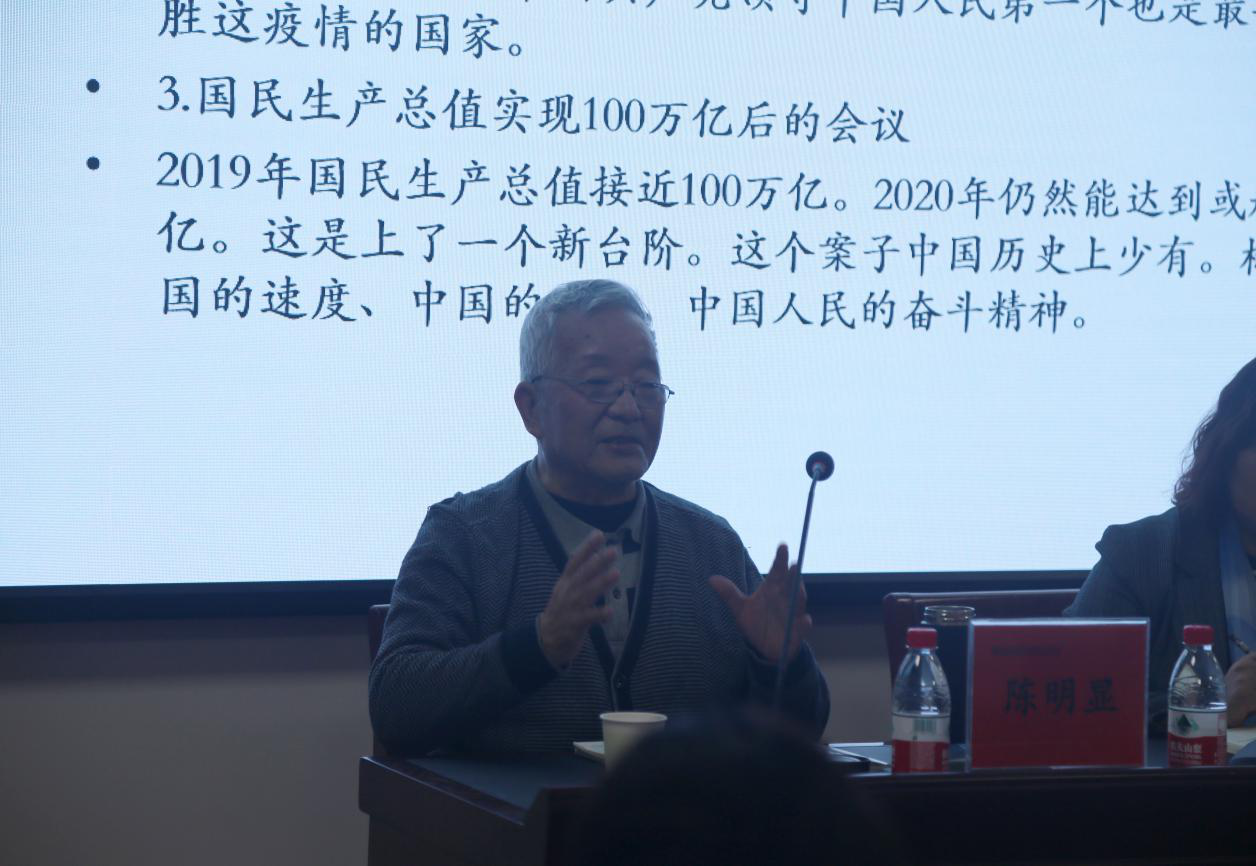 陈明显教授从历史发展视角对十九届五中全会召开的重要历史节点、五中全会提出的“十四五”规划建议以及新时代发展要求等三个问题展开解读。首先,我们要充分认识五中全会的历史地位,因为它是“两个一百年”交汇点上的会议、战胜新冠后召开的会议、国民生产总值实现100万亿后的会议、标志着中国社会主义建设步入新阶段的会议、中国历史发展转变关头的会议、标志着习近平总书记思想全面指导下的会议。其次,我们要深刻认识五中全会提出的《建议》,这就要求我们必须意识到“十四五”规划是从实践出发的好规划,要了解和掌握“十四五”规划的特点和2035年的远景目标。最后,陈明显呼吁我们青年要紧跟时代大发展,紧跟党中央步入新时代新阶段,紧跟党中央走努力学习的道路。