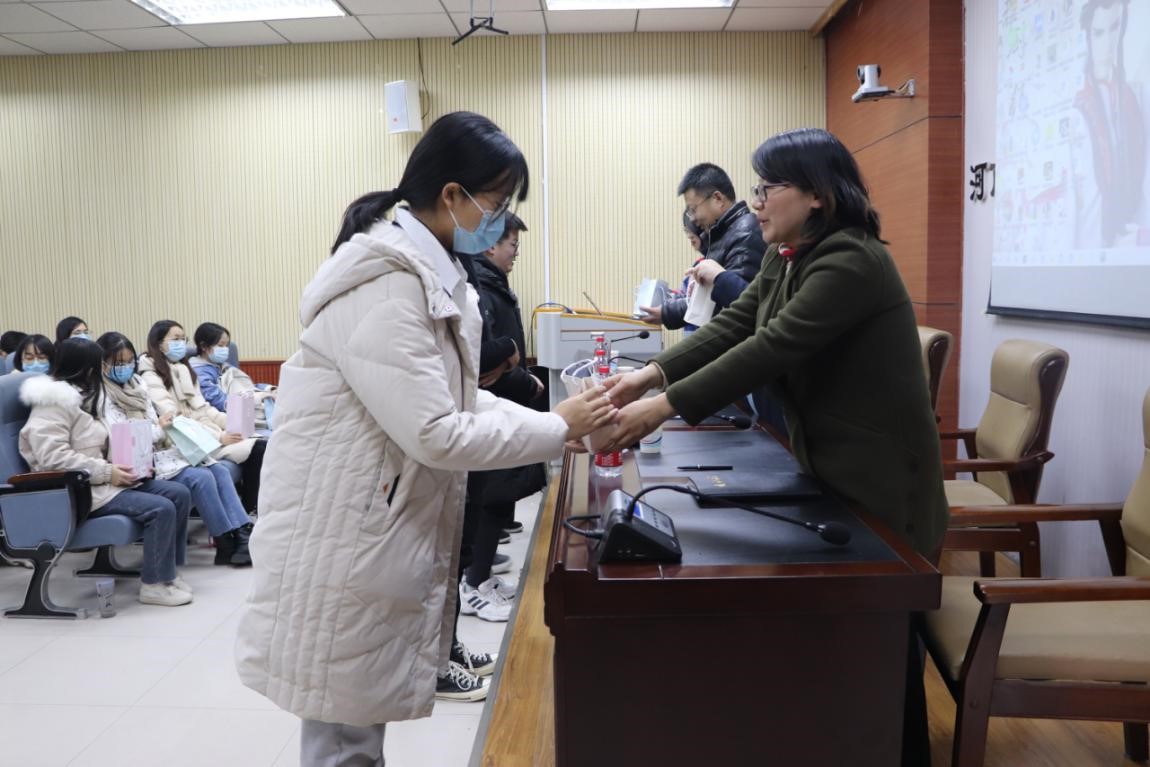 为鼓舞学子考研士气,舒缓备考压力,调整备考状态,12月24日,嫩草影院 于第一会议室举行考研考前慰问动员会。学院党委副书记骆春丽,副院长马翠军,哲学系教授赵清文,团委书记、2017级辅导员贾银兰代表学院为2017级考研学子送上温暖与祝福。