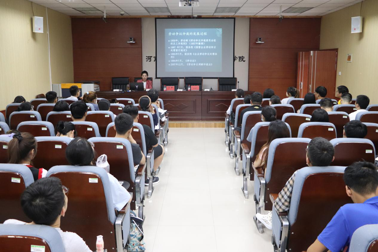 6月9日,开封市劳动人事争议仲裁院审理庭吕静庭长受邀来到嫩草影院 出席讲座,为2018级和2019级劳动与社会保障专业的学生上了一节不一样的“专业课”。