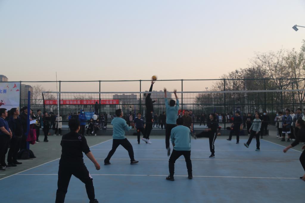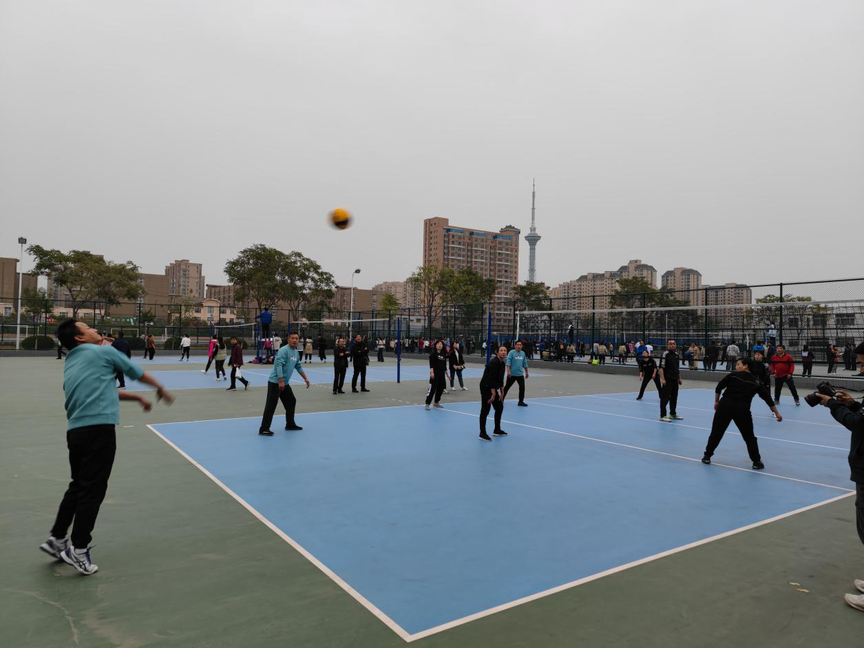 寒风划长空,排球凌空跃。伴随着一声哨响,党鸿军一个高抛发球,掀开了整场比赛的帷幕。紧接着,起跳、拦网,唐秋伟接球后大力扣球得分。场上的女教师更是巾帼不让须眉,郑雪飞稳接多个一传,刘素姣蜻蜓点水般的巧打轻吊。老师们一个个攻守有度,配合默契,每一次精彩的传球与得分都引来欢呼阵阵,现场的气氛渐进高涨。
