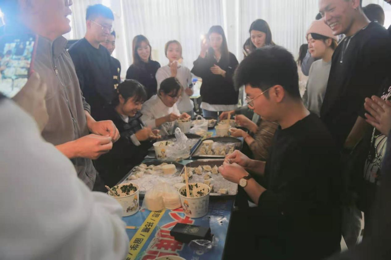 活动开始之前,学院已经精心准备好了活动所需的材料和工具。在简单介绍了活动流程和活动规则之后,本次活动在温馨的氛围中拉开了帷幕,全体成员分组进行。为增添活动趣味性,在活动过程中进行了两轮比赛,分别是“比谁包的速度快”和“看谁包的花样多”,在比赛中,每个成员都以极大的热情和激情参与进去,最后由现场工作人员组成评审团评判选出获胜者,并颁发精美奖品。饺子下锅后,同学们聚在一起共同品尝热气腾腾的饺子,并在活动结束后合影留念。