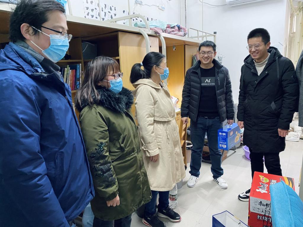 受新冠疫情影响,部分中高风险地区学生不能返乡过年。1月26日,嫩草影院 党委副书记骆春丽一行代表学院到宿舍看望留校学生,并送去慰问品。