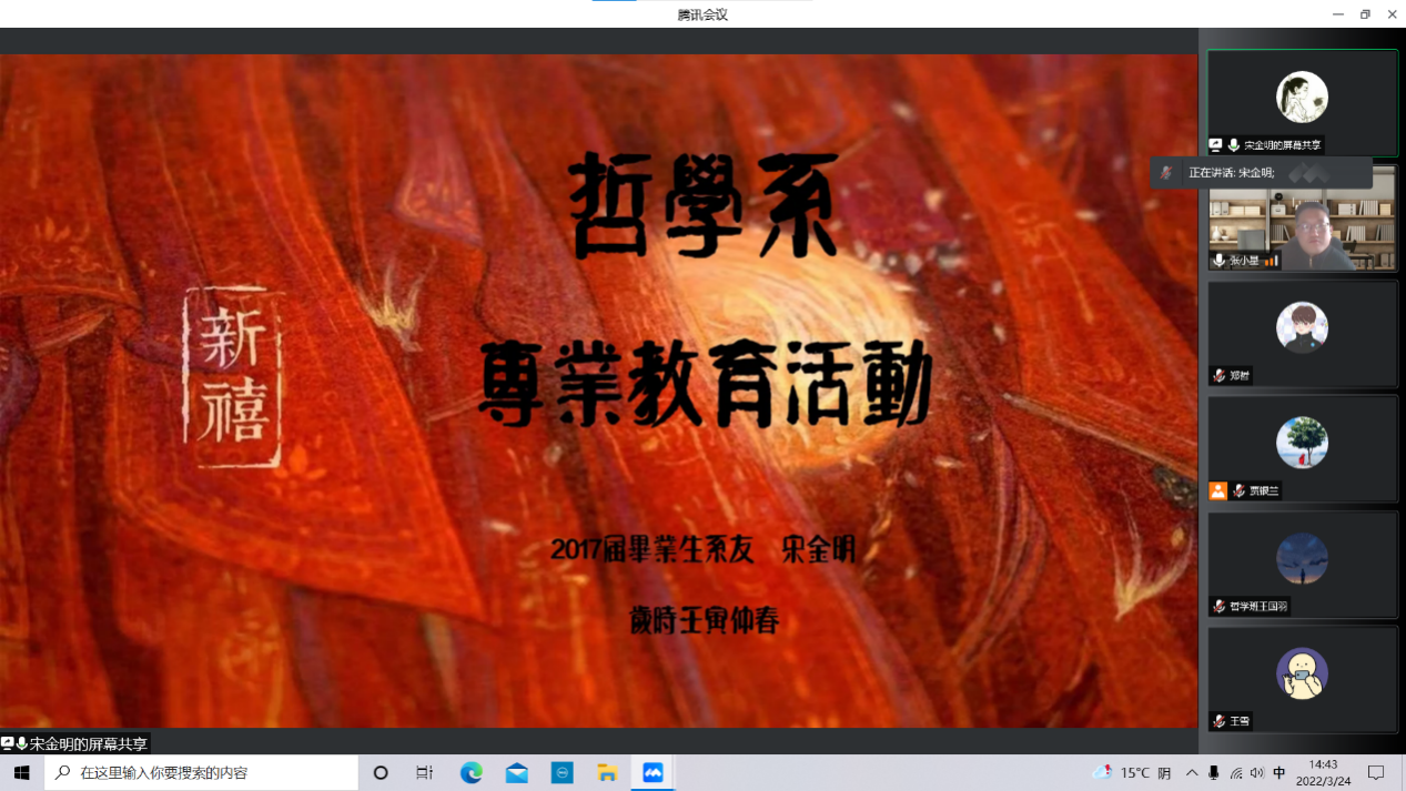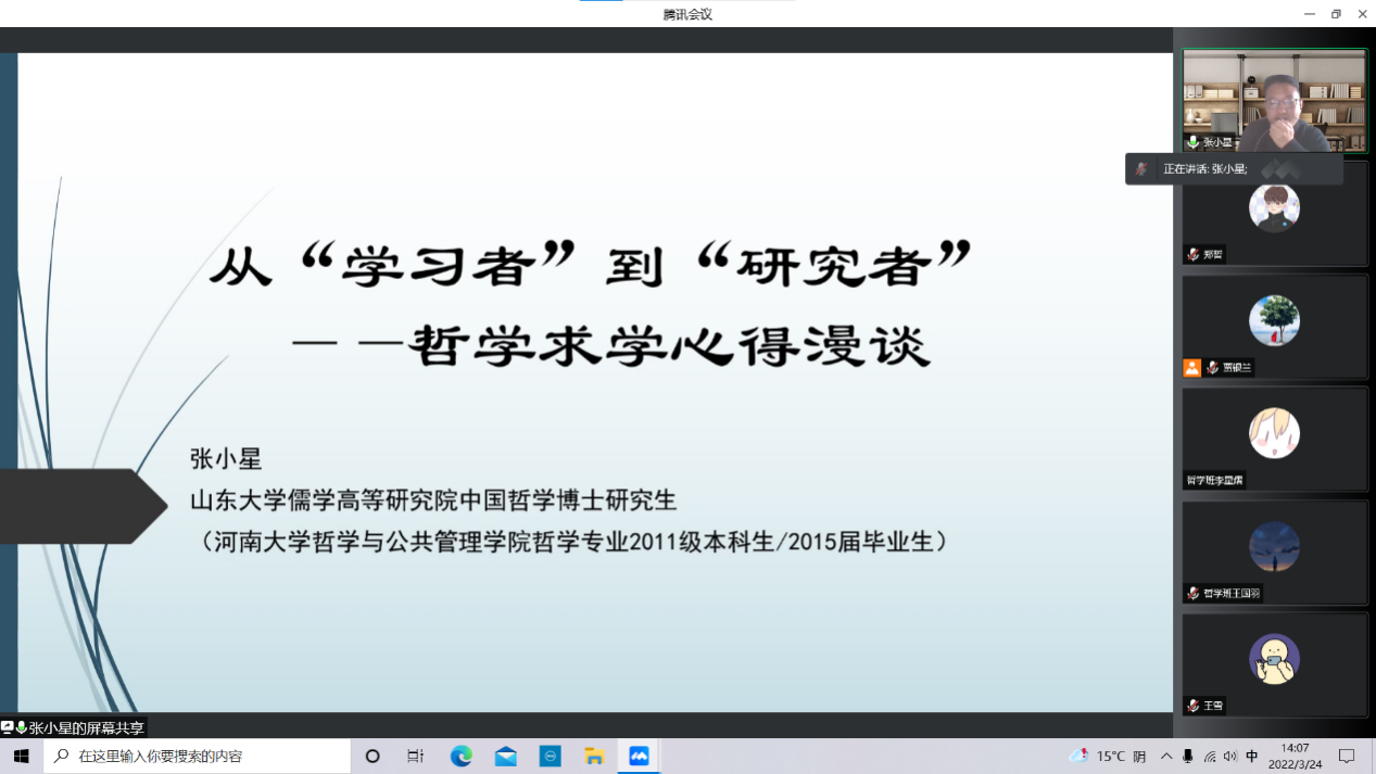 3月24日下午,嫩草影院 于线上举办2021级哲学专业教育大会。学院副院长田丰韶、哲学系教师代表、哲学专业优秀校友代表应邀参会,2021级哲学专业全体本科生参加,会议由哲学系系主任王建刚主持。