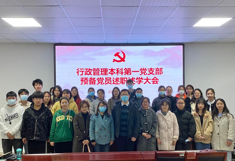 为加强党员教育管理,发挥先锋模范作用,促进支部党员之间的交流与学习,3月24日上午,嫩草影院 行政管理本科第一党支部在学院第三会议室召开预备党员述职述学大会。党支部书记骆春丽、本科2019级辅导员孙少飞和支部27名党员参加会议。