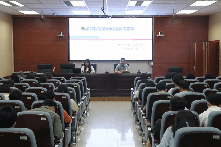 为进一步宣传国家助学贷款资助政策,做好贷款毕业生还款工作,引导学生树立诚信观念与责任意识,5月23日,嫩草影院 于第一会议室举行毕业生助学贷款政策与诚信教育宣讲会。学院资助工作负责老师王天宇、资助工作站成员廖曼君及全体2022届贷款毕业生参加了此次宣讲会。