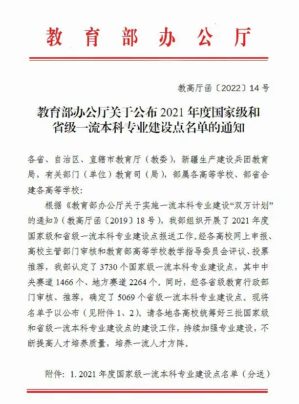 近日,教育部办公厅公布了《2021 年度国家级和省级一流本科专业建设点名单》(教高厅函〔2022〕14 号),嫩草影院 劳动与社会保障专业入选国家级一流本科专业建设点,社会工作专业入选省级一流本科专业建设点。