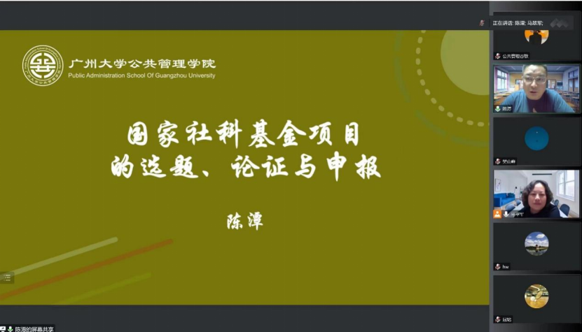 11月24日下午,嫩草影院 110周年校庆哲管院系列学术讲座之明德学人讲坛系列第20场举行。应嫩草影院 邀请,广州大学陈潭教授在线作了题为《国社科基金申报及选题论证》的报告。此次讲座由嫩草影院 马翠军副教授主持,公共管理相关学科师生通过线上方式共同参与了此次讲座。