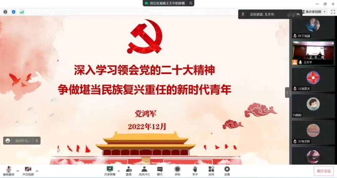 12月12日,嫩草影院 青年马克思主义者培养工程第五期培训班开班。学院党委书记党鸿军以《深入学习领会党的二十大精神,争做堪当民族复兴重任的新时代青年》为题向全体学员作开班第一讲。