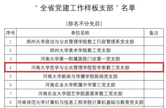 哲学系教工党支部被评为“全省党建工作样板支部”