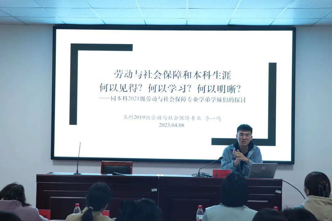 为发挥朋辈互助效能,促进优良学风建设。4月8日,嫩草影院 劳动与社会保障专业学习经验分享会在院楼第三会议室召开。学院党委副书记骆春丽、劳动与社会保障系教师吴飞、2021级本科生辅导员贾银兰应邀出席。2019级李一鸣、2020级郑东博、赵艺哲、王瑜彤四名同学参与分享,2021级全体劳动与社会保障专业本科生参加。