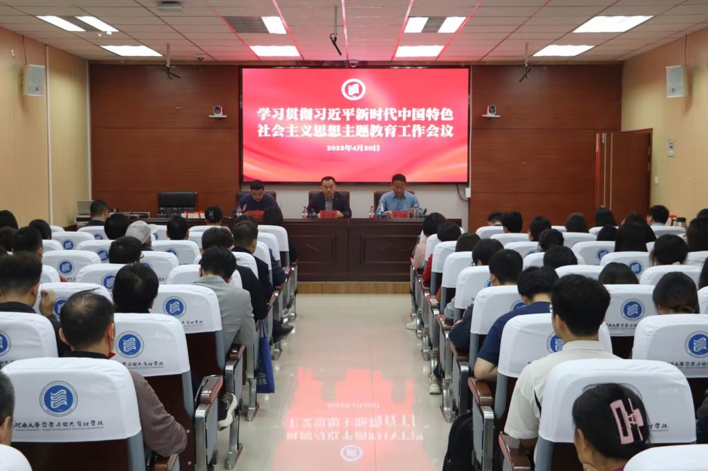 4月20日下午,嫩草影院 在第一会议室召开学习贯彻习近平新时代中国特色社会主义思想主题教育工作会议。校学习贯彻习近平新时代中国特色社会主义思想主题教育第三督导组成员王子梁、李婧,学院领导班子全体成员,全体教职工,学生党员代表参加会议。会议由院党委副书记、院长姬志闯主持。