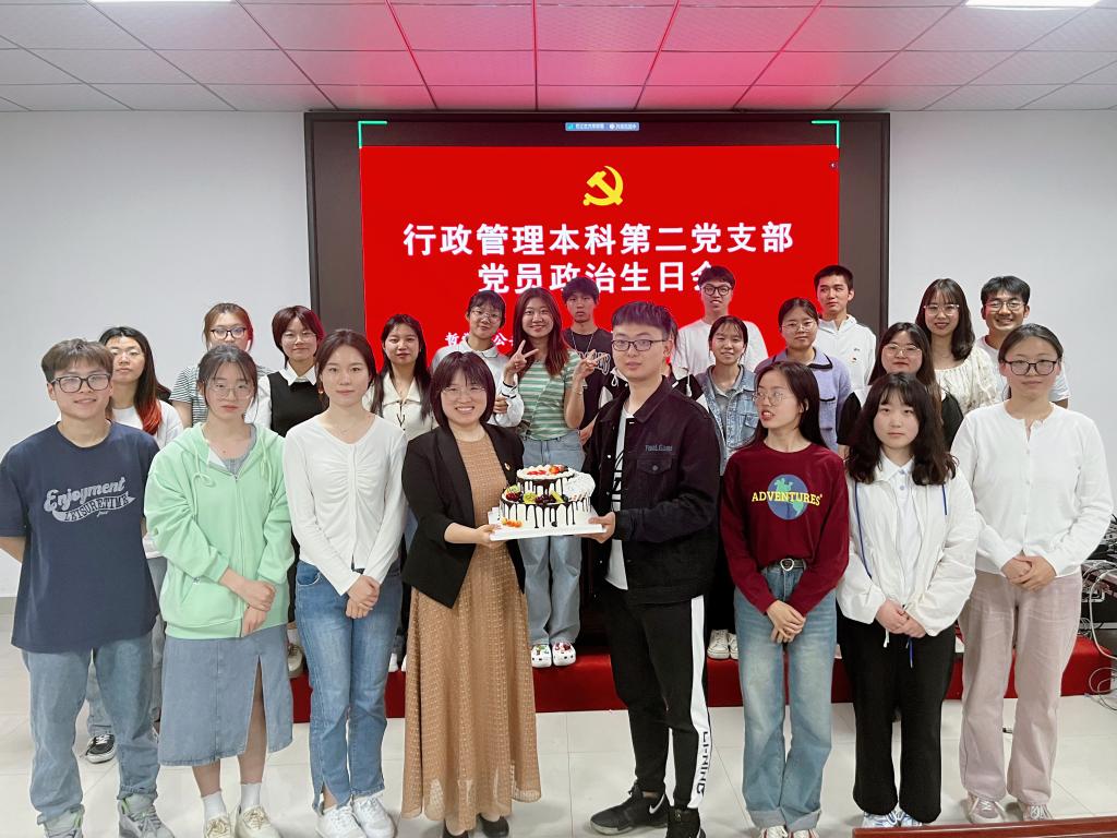 为进一步加强党员理想信念,时刻牢记党员“第一身份”,强化使命担当,5月12日,行政管理本科第二党支部于学院第三会议室举行“政治生日”主题党日活动。支部书记贾银兰与支部全体党员齐聚一堂,为9名党员过“政治生日”,共话入党感悟。