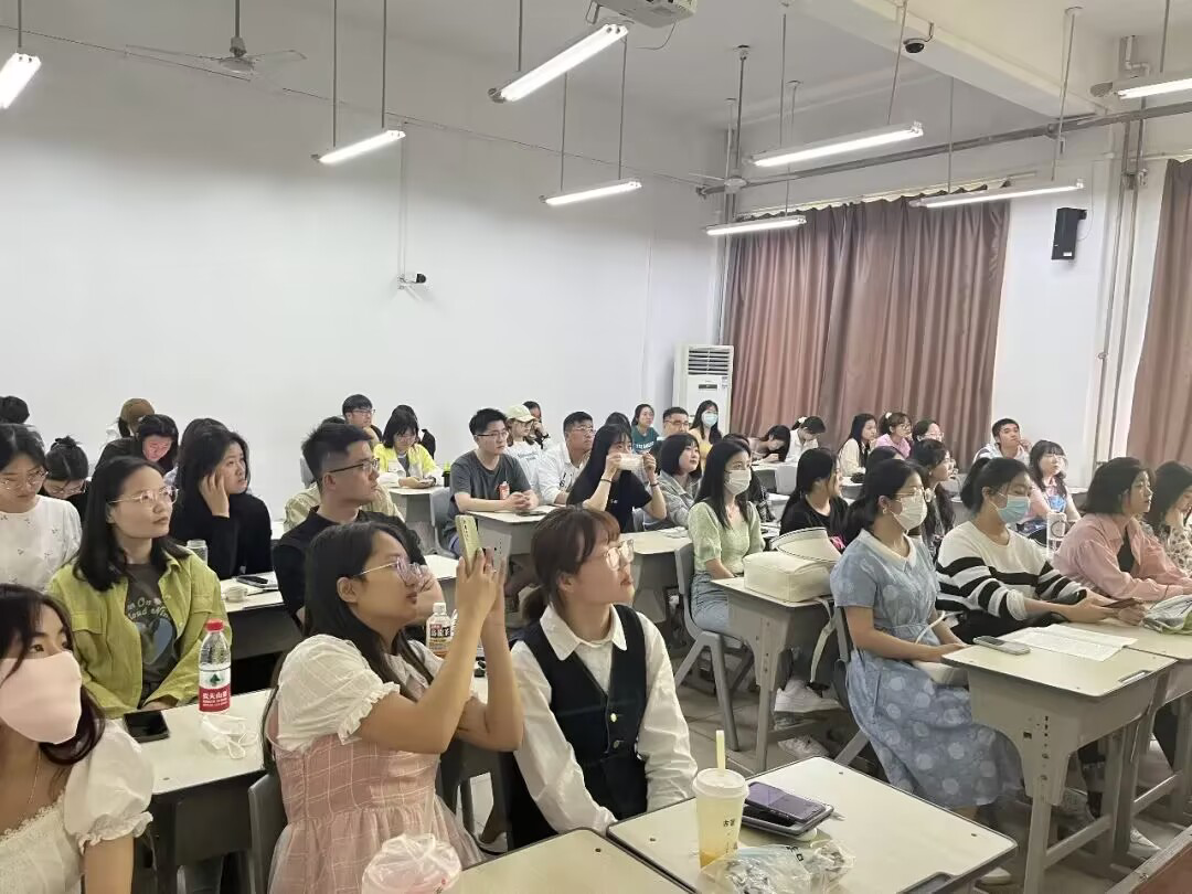 田馨滦作总结发言。她对四位优秀学生的精彩分享表达了感谢,并为每人送上本科2020级精心准备的礼物。田馨滦希望同学们向优秀榜样看齐,充分吸收学长学姐的成功经验,及早明确自身发展方向并科学制定备考规划,奋力实现个人就业目标。她表示,后续年级内部将组建考公小组,持续分享公考岗位招聘、备考资料等有效信息,并会定期组织模拟考试,尽心尽力为大家做好考公后勤服务。