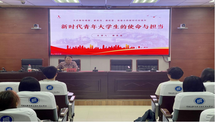 其次,骆春丽紧扣党课主题,结合青年学生当前学习生活实际,围绕“时代”关键词,以时代为切入口,落脚到青年大学生,从读懂时代、融入时代、不负时代三个方面解读青年大学生的使命与担当。她表示,新时代的中国青年,生逢其时、重任在肩,在这样的时代背景下,作为当代青年大学生,应该以“信念、忠诚、担当、奉献”的品格扛起大旗,立足中原大地,讲好中国故事,应对世界之变。