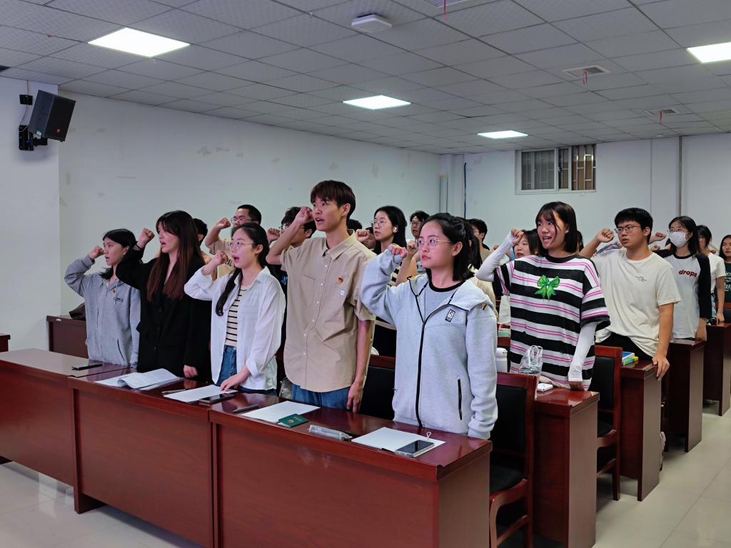 随后,团委副书记丁培涵带领新团员在团旗下庄严宣誓。新老团员铿锵有力的誓言如同一剂理想信念“强心针”,极大地激起了全体在场团员的青春朝气、干事激情、奉献精神和爱国情怀。