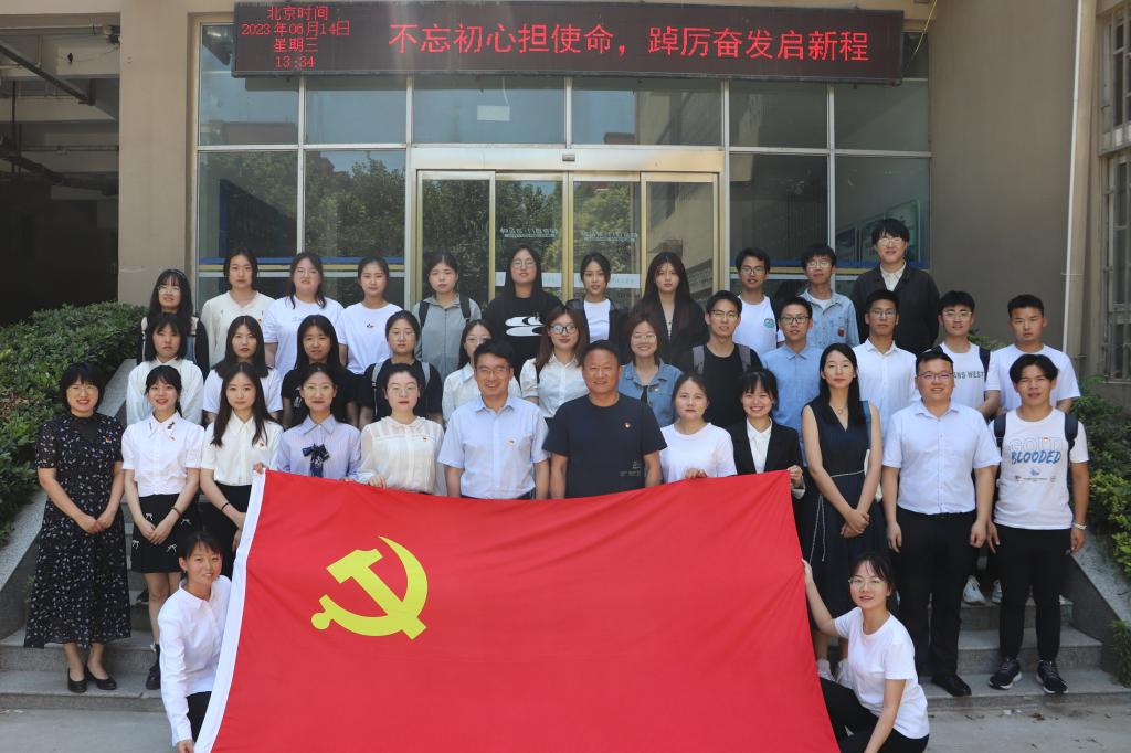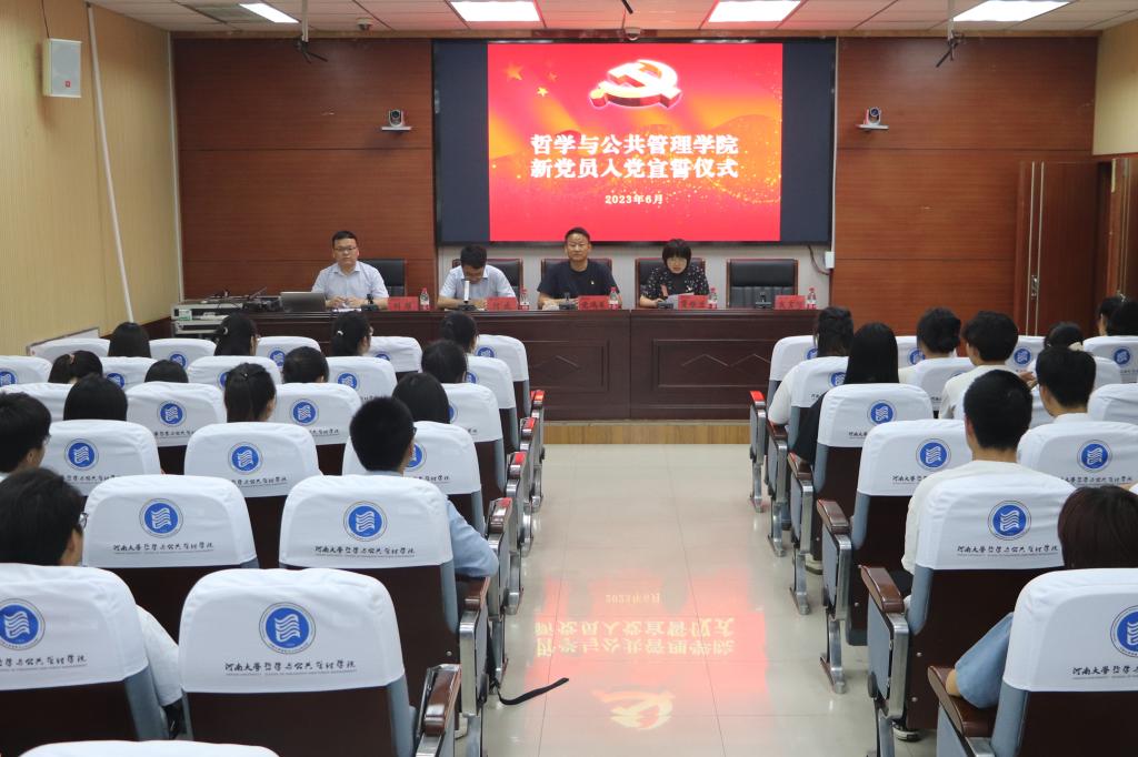 6月14日,嫩草影院 在第一会议室举行2023年春季学期新发展党员入党宣誓仪式,学院党委书记党鸿军、党委副书记何威、学生党支部书记代表、35名新发展党员和入党积极分子代表参加仪式。仪式由学院党委办公室主任贾银兰主持。