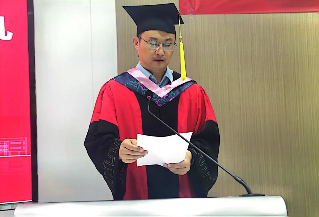拨穗授位,承梦扬帆。在悠扬的乐曲声中,受校长张锁江院士委托,院长姬志闯为现场的毕业生依次援正流苏、颁发学位证书,并合影留念。