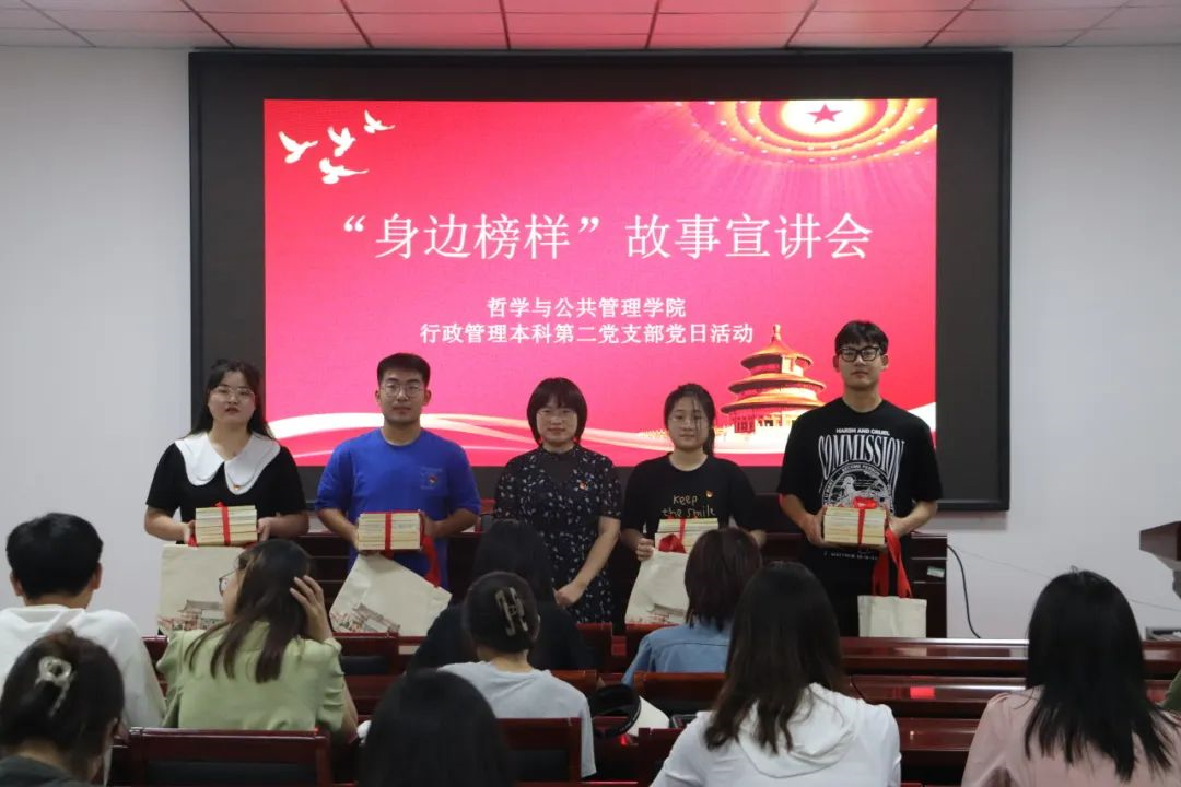 6月14日,行政管理本科第二党支部在学院第三会议室开展“身边榜样”故事宣讲活动,支部成员杜红艳、苏子乐、安骋昊、秦娜四位同志依次分享了身边党员榜样事迹。支部书记贾银兰表示,要以身边榜样为引领,用实际行动践行榜样精神、传承榜样力量,践行青年党员的责任和使命。