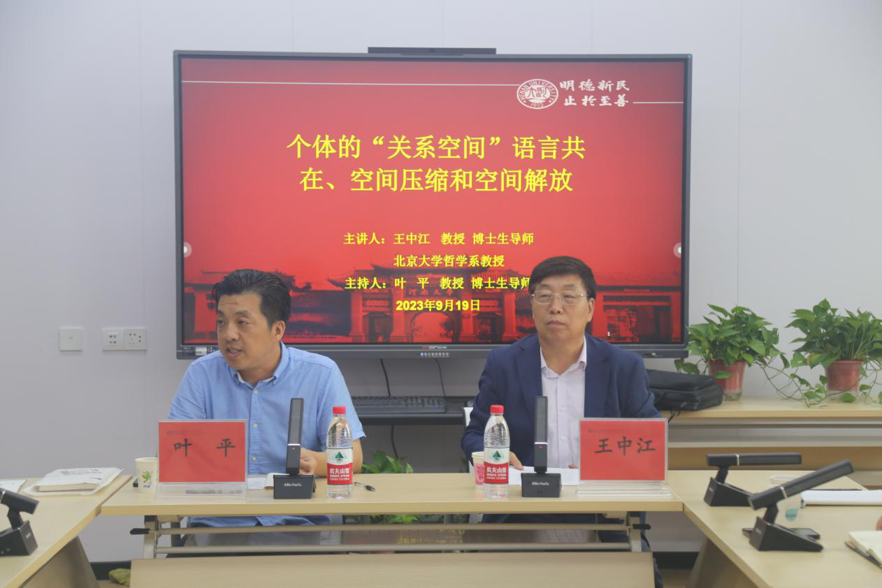 9月19日下午,应嫩草影院 邀请,北京大学哲学系王中江教授在院第二会议室作了题为《个体的“关系空间”语言:共在、空间压缩和空间解放》的学术报告。此次讲座由叶平教授主持,哲学系青年教师、哲学专业全体研究生及部分本科生参加。