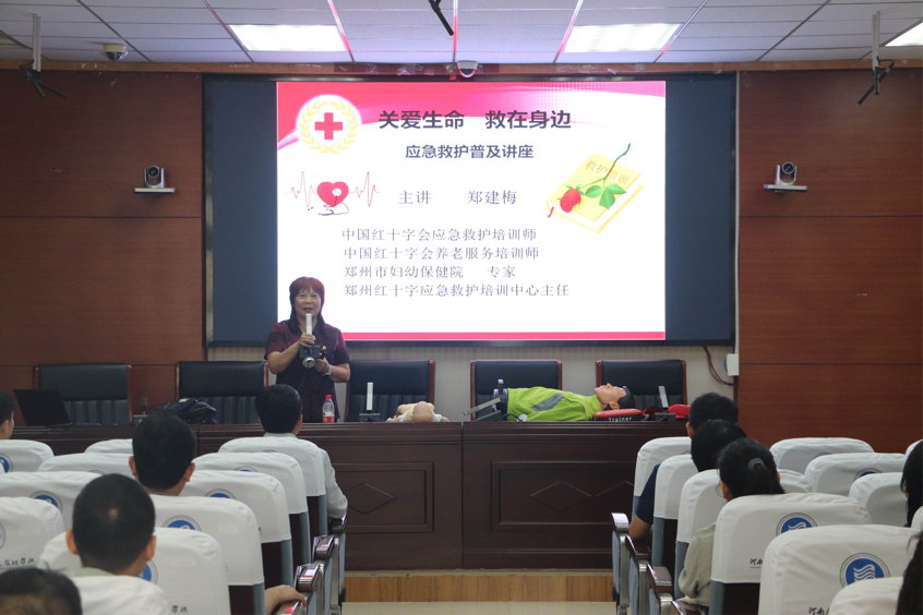 会后,应学院工会邀请,中国红十字总会高级培训师、郑州红十字应急救护培训中心主任郑建梅,校医院李晓娜两位大夫为学院教职工普及讲解急救知识,并进行相关技能培训。