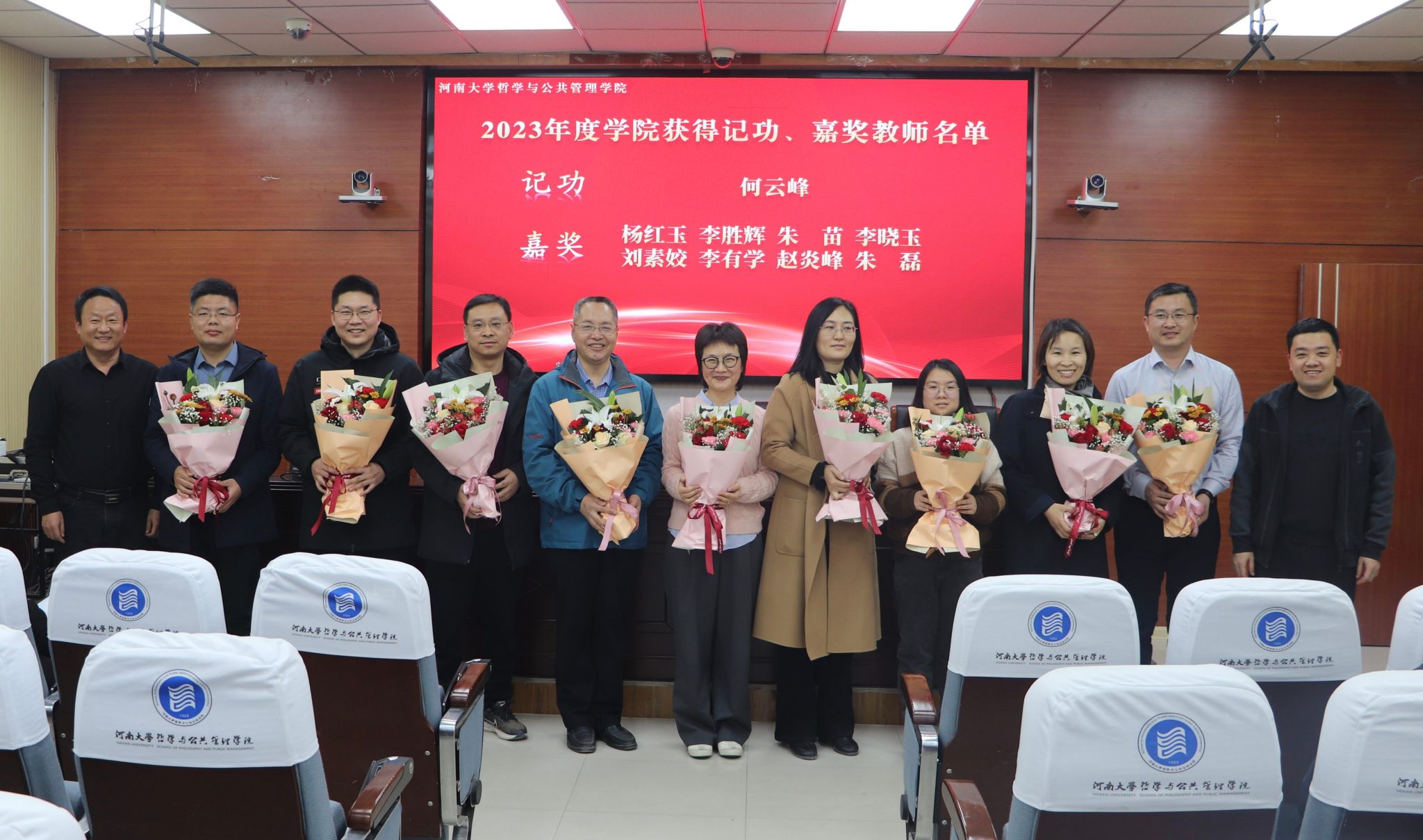 红烛照耀育桃李,一载耕耘一载歌。学院对2023年度获得记功、嘉奖的教师进行表彰。在热烈的掌声中,学院领导为每一位获表彰的教师献花,对他们做出的贡献予以高度赞扬和肯定,进一步激励全体教职工干事创业的热情,为提升学院的教学质量和科研水平贡献力量。