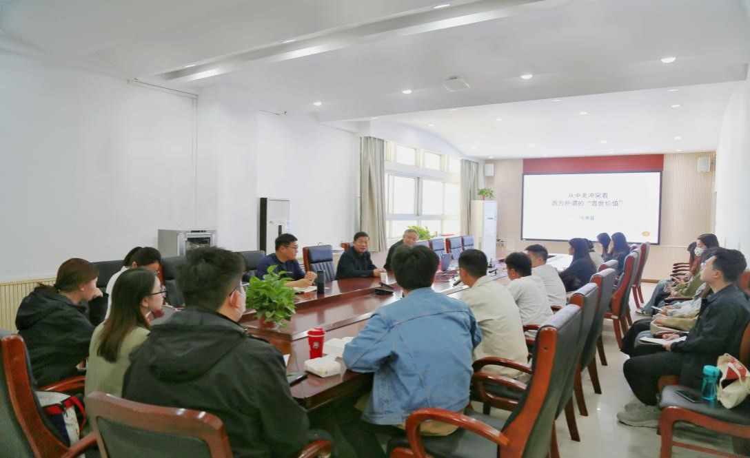 首先,马德普教授从中美冲突入手,把该冲突的根本性质提升到中美两大文明体系千年博奕的高度,这种大规模、范围广的全方位冲突的实质是种族之间生存发展权的竞争。接着,马德普教授论述普世价值的含义、分析两种论证进路的困境,明确了当前并不能有效证明普世价值的存在。随后,马德普教授通过普世价值与价值的情境性、多元性、冲突性的深刻矛盾指出普世价值的危害。马德普教授独创的三种价值领域的适用范畴走出了普世价值论者的误区。最后,马德普教授总结到,所谓的普世价值采取的是双重标准,是美国控制打压竞争者、维护统治的工具。中华文化是彼此兼顾的和合文化,虚心学习、认识不足、勇于进行新文化创新是当今学子奋斗的目标。