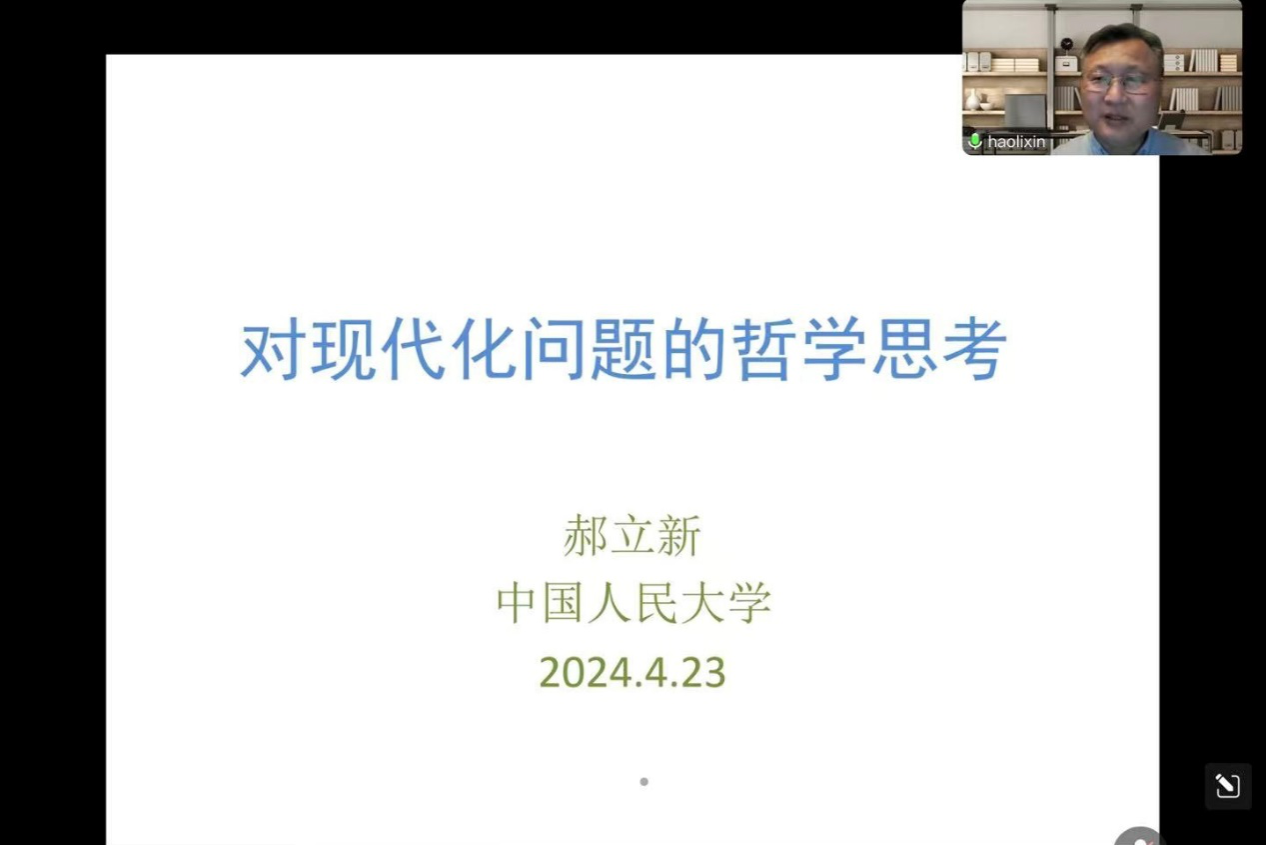 4月23日晚,中国人民大学哲学院郝立新教授受邀在嫩草影院 第二会议室作了题为“对现代化问题的哲学思考”的学术讲座。此次讲座由嫩草影院 戈士国教授主持,哲学专业的研究生与青年教师参与了此次讲座。