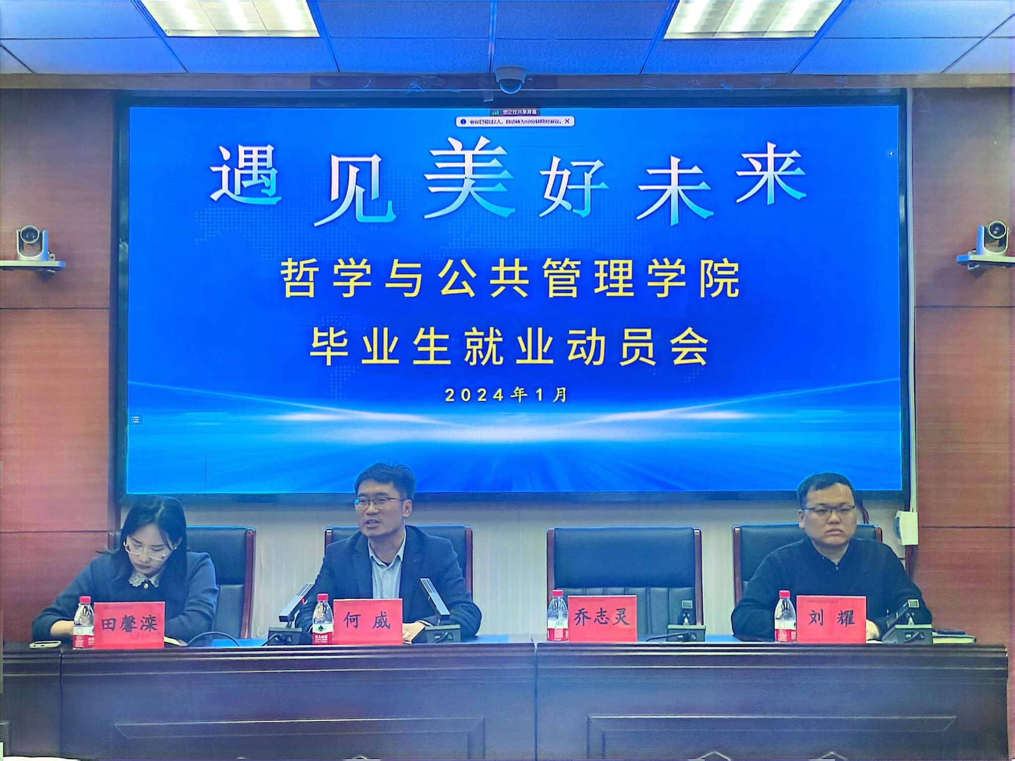 在毕业求职的关键时间节点,为提振就业信心,明确就业方向。2024年1月12日晚,嫩草影院 在第一会议室召开2024届毕业生就业动员会。院党委副书记何威、2020级本科生辅导员田馨滦、2021级研究生辅导员乔志灵出席会议,毕业年级全体学生参加。会议由学院团委负责人刘耀主持会议。