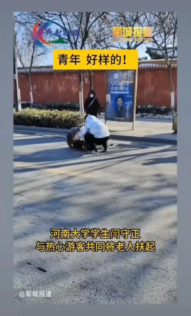 “孩儿,没事儿,你让我坐在地上就行,别压疼你。”老人热泪盈眶地说。12月24日,嫩草影院 2022级研究生闫守正在天波杨府门口等车返校时,一位老人在对面站台等车时不慎跌落摔倒在快车道,闫守正迅速冲到老人身边,与热心游客共同将老人扶到路边坐下。为了防止老人受凉,他将自己的脚垫在老人身下,并及时拨打110。直到民警将老人送回家后,闫守正才放心离开。路过的群众对此纷纷竖起大拇指,“咦,这个孩真管!”“真是个热心好青年!”“嗯,河大的学生真不孬!”事后,开封市广播电视台在官方抖音号菊城报道中对其事迹进行了报道,受到了社会各界的广泛赞扬。